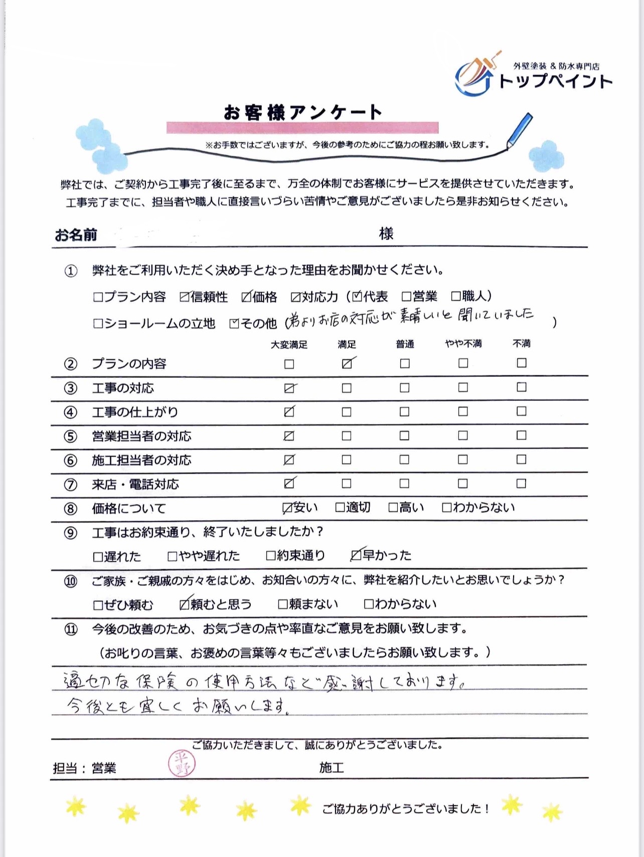 HOME > お客様から頂いた評判の声 > 八尾市 O様邸