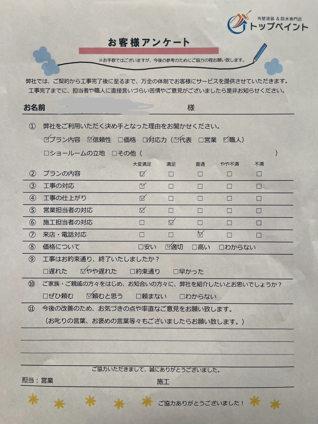 八尾市 K様邸 2025.09.29 (Mon) 更新 八尾市 K様邸 施工データ 工事内容 屋根/外壁/付帯塗装・シーリング補修・防水工事 建物の種類 カラーベスト/窯業系サイディング 工期 25日間 費用 154万円 建物の種類 カラーベスト/窯業系サイディング