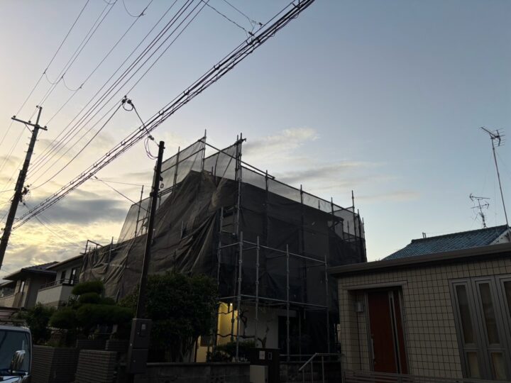 屋根外壁塗装の為の足場設置です。