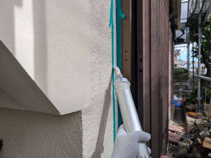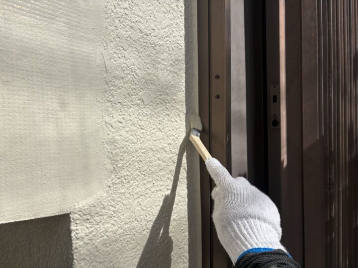 Uカットした所を清掃し、シーリング材の密着をよくするプライマーを塗布します。