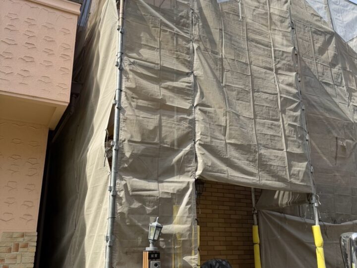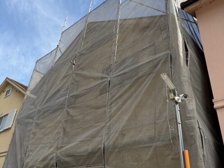 外壁塗装の為の足場設置です。