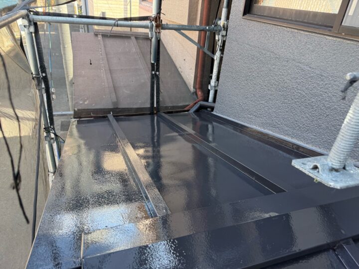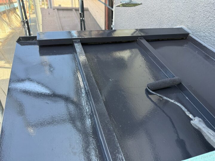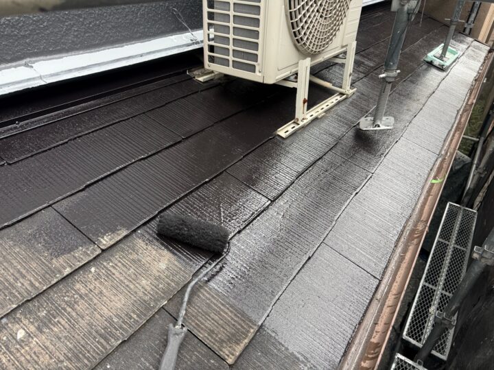 2回塗りを行い、屋根の表面を綺麗に仕上げ完了です。