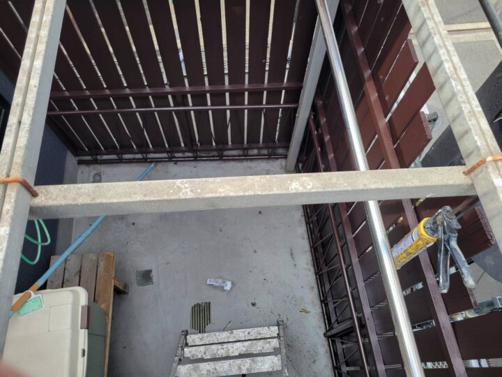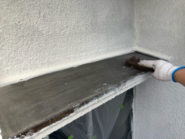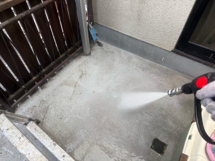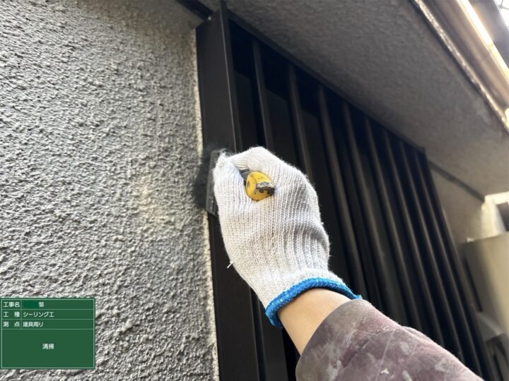サッシや付帯部ベランダの汚れを落とし乾燥させます。