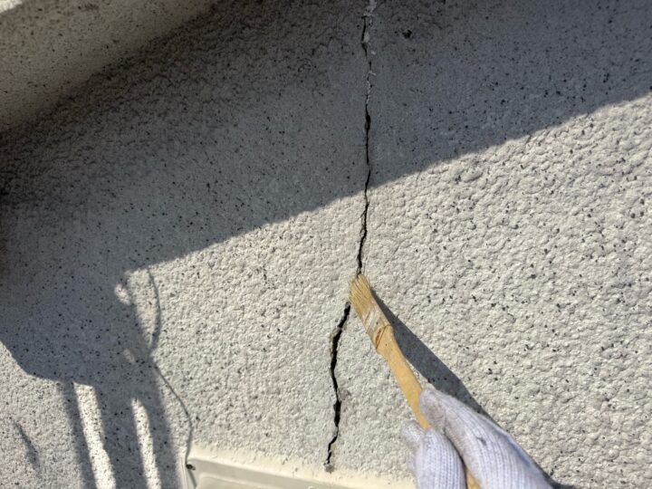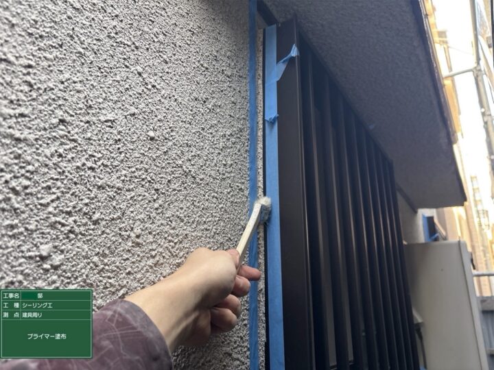 Uカットした所を清掃し、シーリング材の密着をよくするプライマーを塗布します。