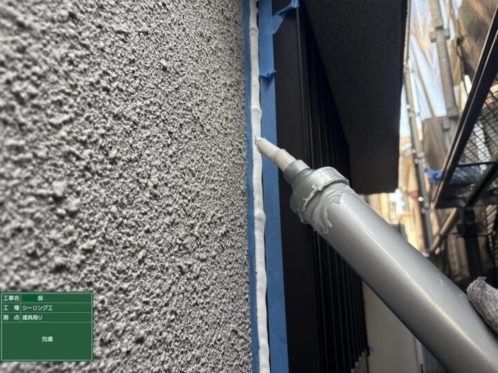 シーリングガンを使って、シーリング材を充填。ヘラで表面を平滑にします。